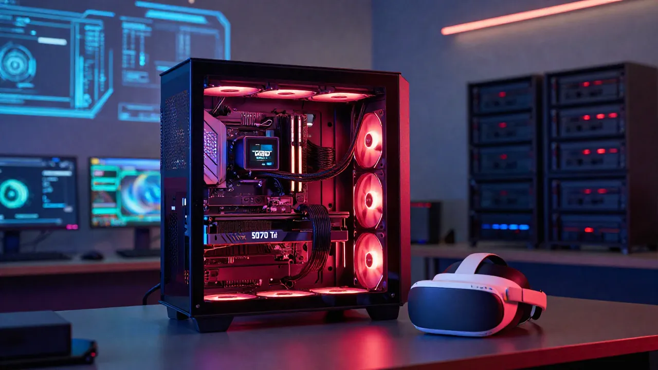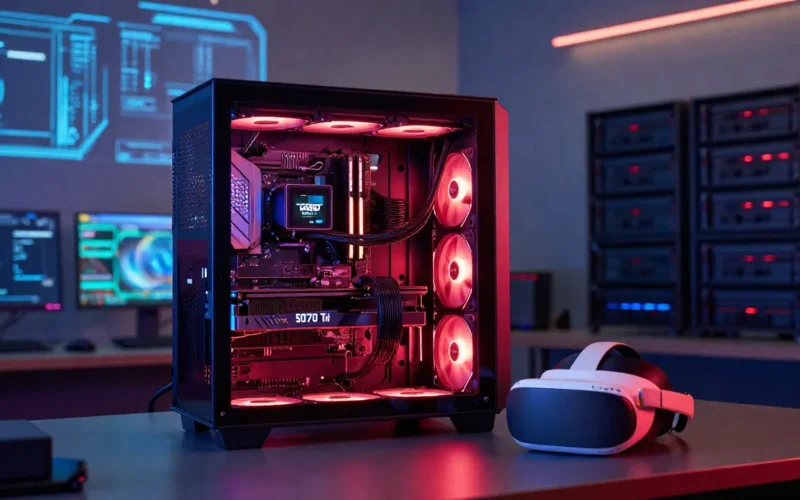 Il processore AMD 9800X3D e la nuova RTX 5070 Ti raggiungono prestazioni incredibili nella realtà virtuale. Questa configurazione permette di attivare il preset “Godlike” su Virtual Desktop con una fluidità inaspettata.