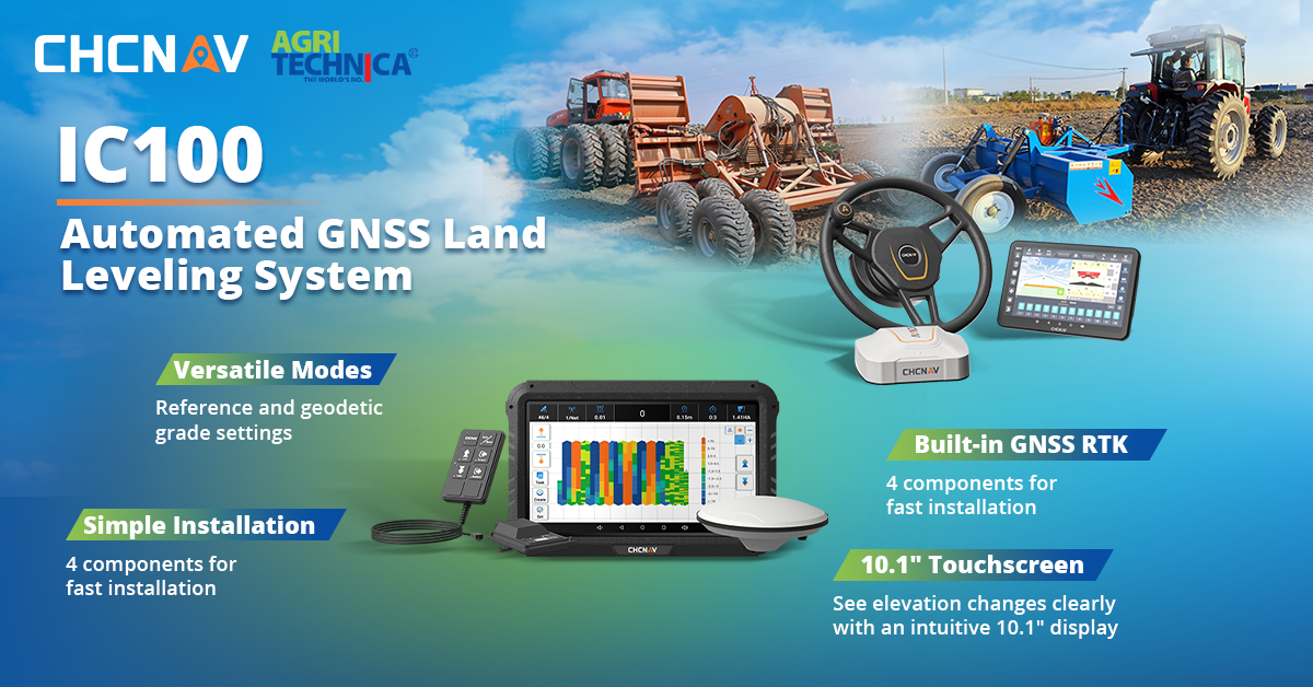 IC100 (Sistema di Livellamento del Terreno): Controlla l’altezza e la pendenza di lama o livellatrice in base al progetto impostato; supporta l’importazione della superficie di progetto e la registrazione delle tracce di lavoro. Integrato con le rotte e i modelli di capezzagna AgNav 5, consente un livellamento uniforme in un solo passaggio — creando la base ideale per semina precisa e fertilizzazione variabile.